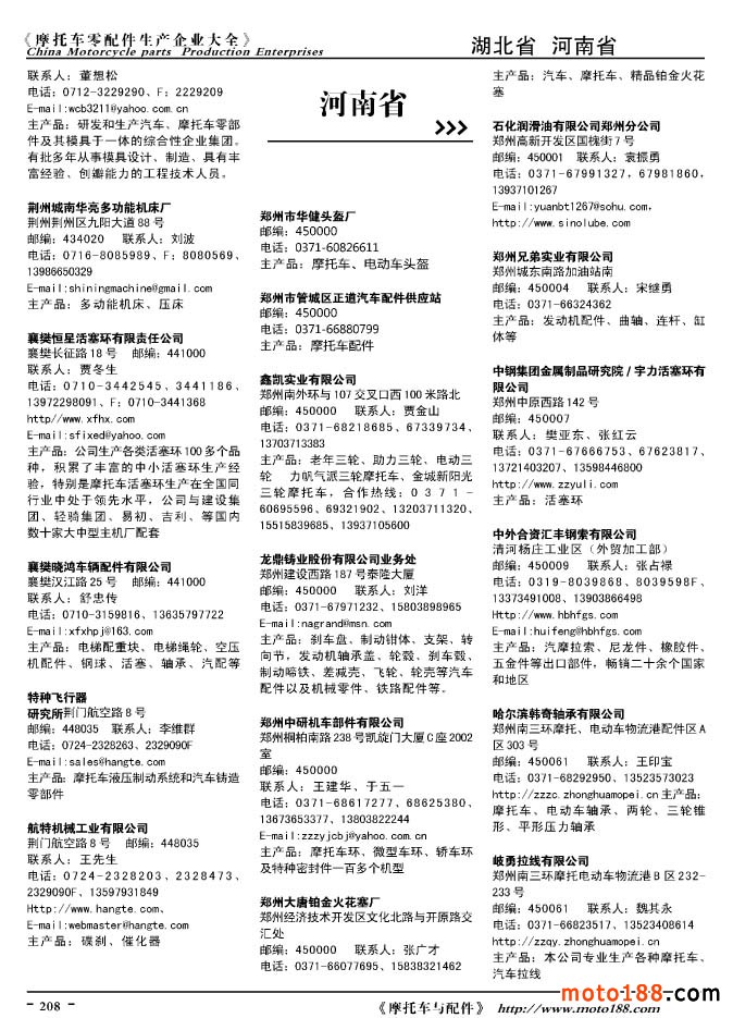 2010版摩托車配件生產企業大全
