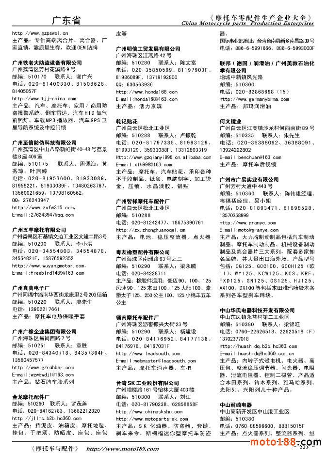 2010版摩托車配件生產企業大全
