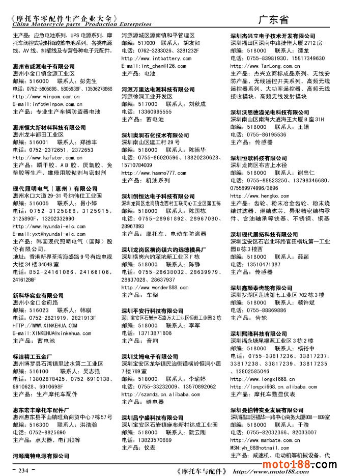 2010版摩托車配件生產企業大全