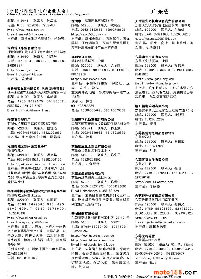 2010版摩托車配件生產(chǎn)企業(yè)大全