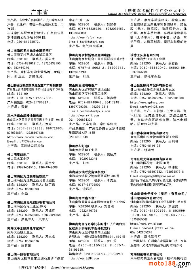 2010版摩托車配件生產企業大全