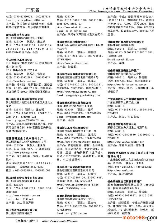 2010版摩托車配件生產企業大全