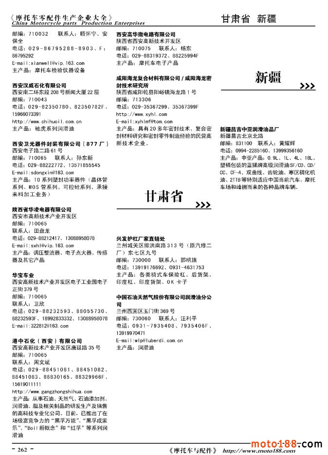 2010版摩托車配件生產(chǎn)企業(yè)大全
