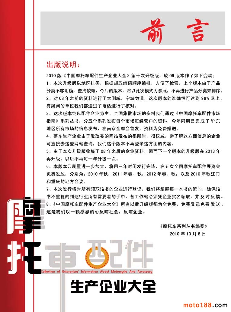 2010版摩托車配件生產(chǎn)企業(yè)大全