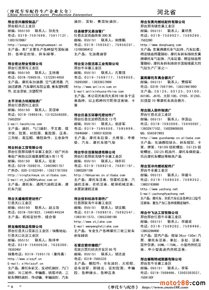 2010版摩托車配件生產企業大全