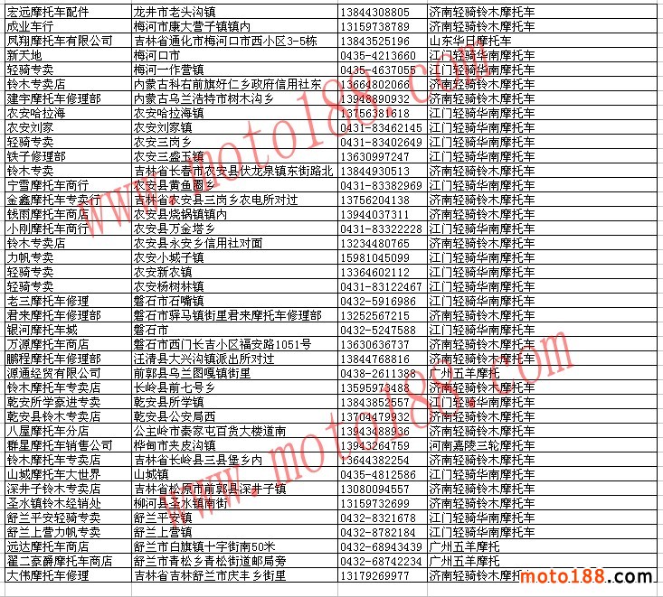 吉林省整車經銷商名錄