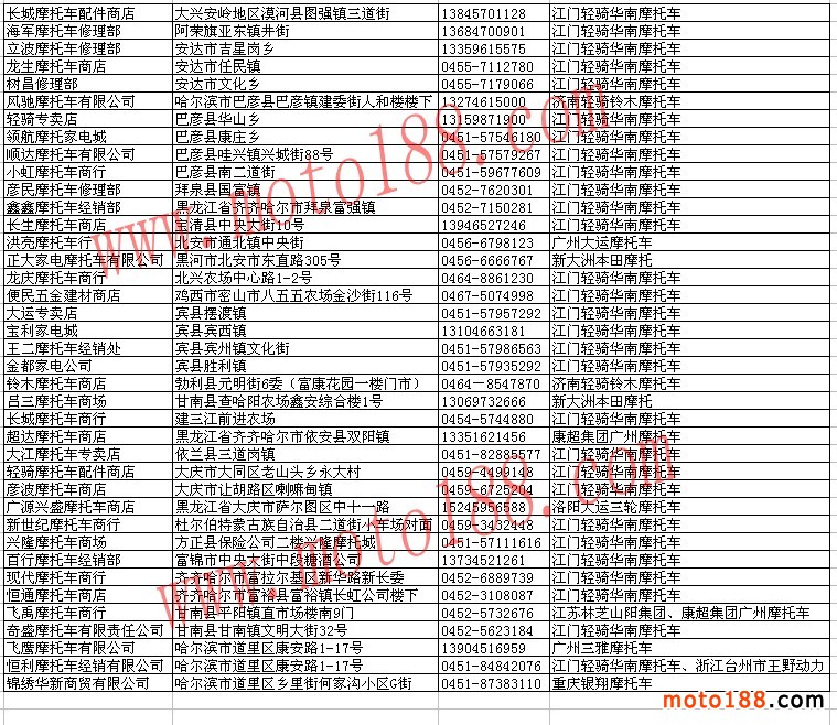 黑龍江整車經銷商名錄