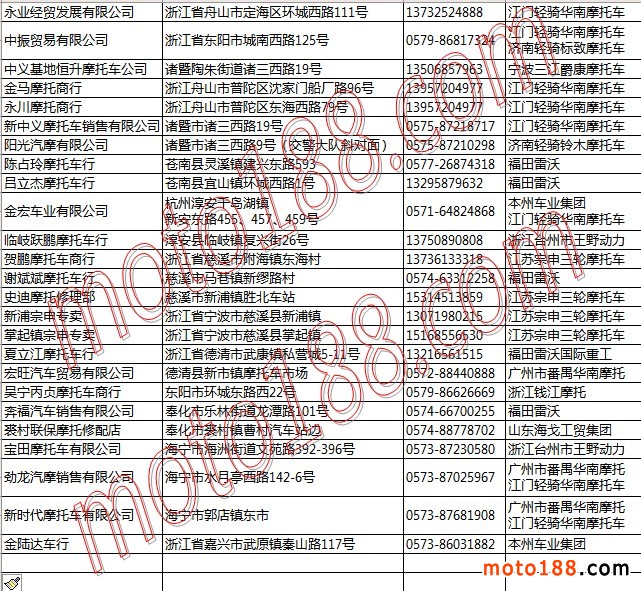 浙江、上海摩托車整車經(jīng)銷商