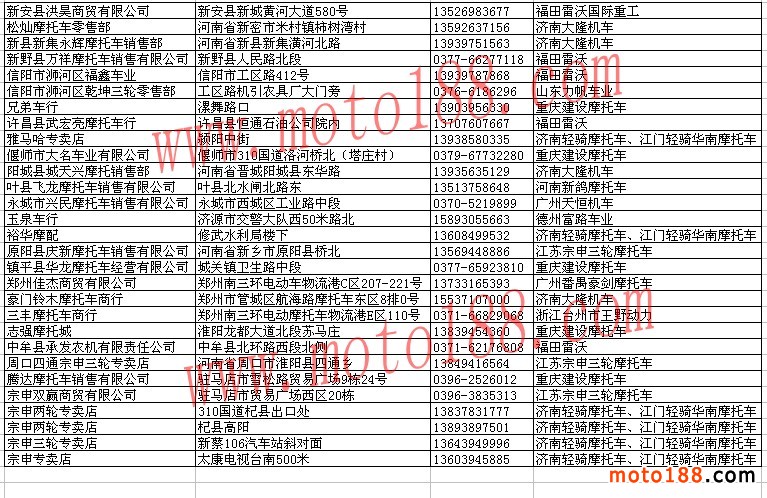 河南省整車經(jīng)銷商名錄