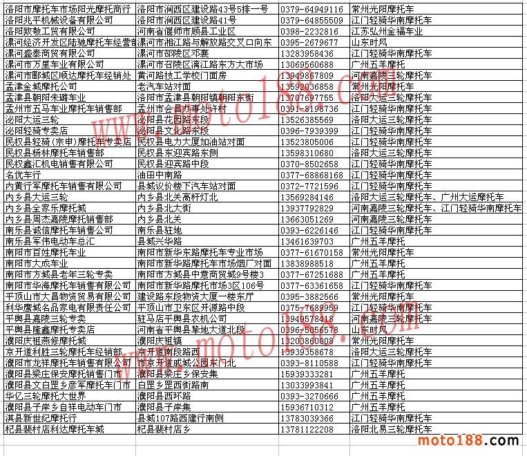 河南省整車(chē)經(jīng)銷(xiāo)商名錄