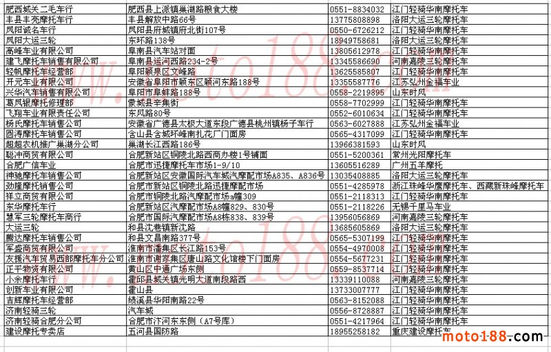 安徽省整車經銷商名錄
