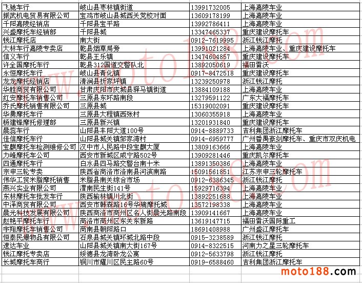陜西省摩托車經銷商