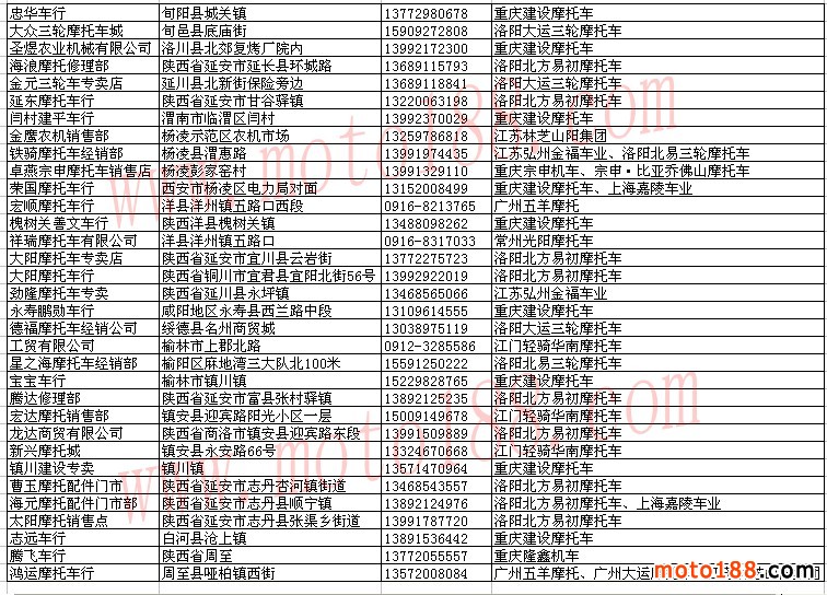 陜西省摩托車經(jīng)銷商