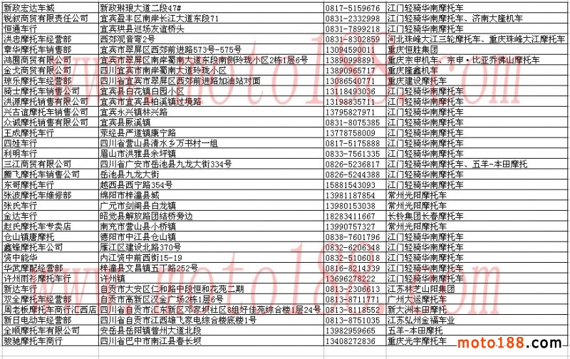 四川省摩托車經銷商
