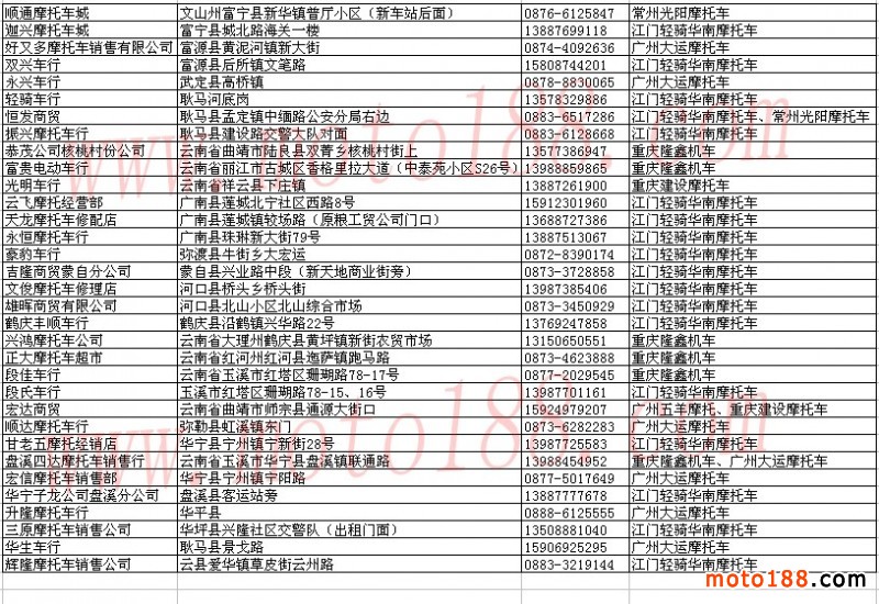 云南省摩托車經(jīng)銷商