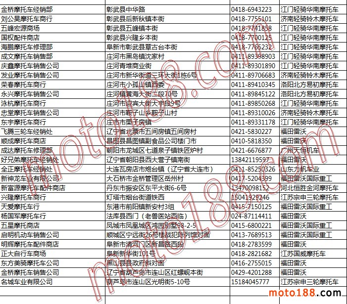遼寧省摩托車整車經(jīng)銷商名錄