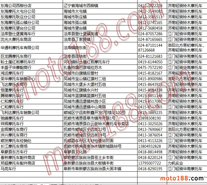 遼寧省摩托車整車經銷商名錄