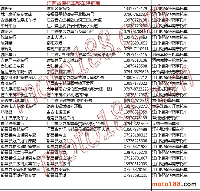 江西省摩托車整車經銷商名錄
