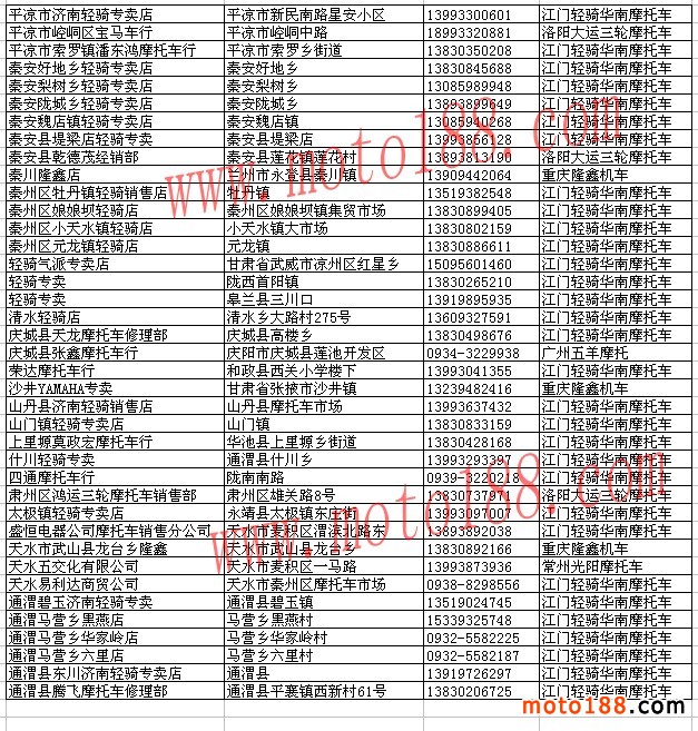 甘肅省整車經銷商名錄