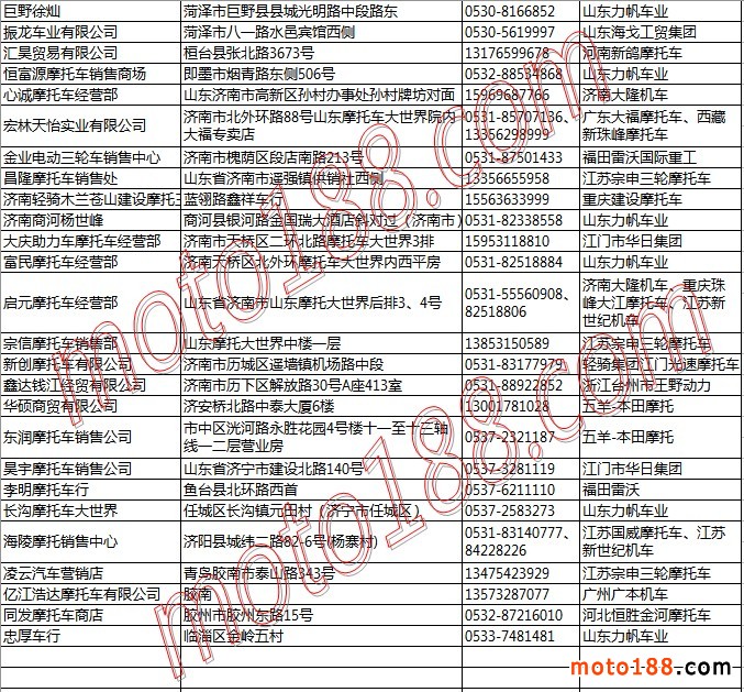 山東省摩托車整車經銷商名錄