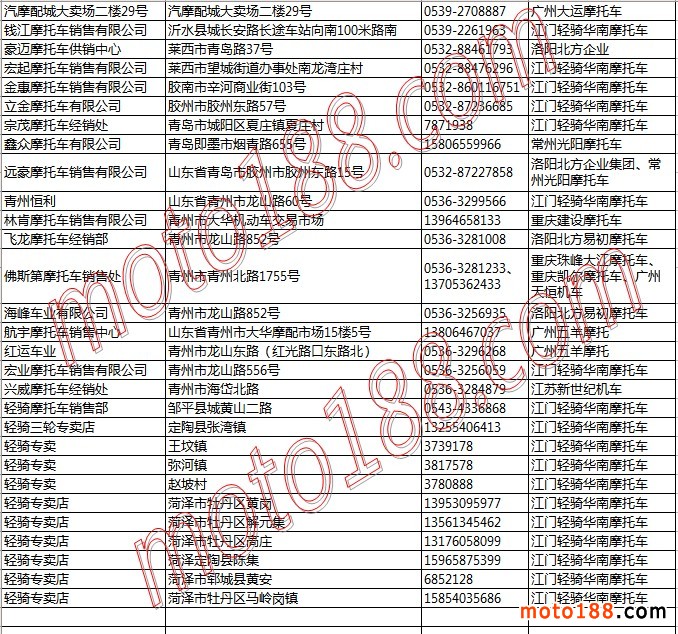 山東省摩托車整車經銷商名錄
