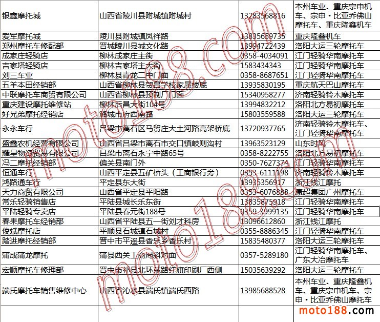 山西省摩托車整車經銷商名錄