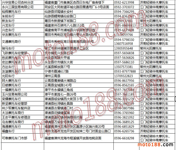 福建省摩托車整車經(jīng)銷商名錄