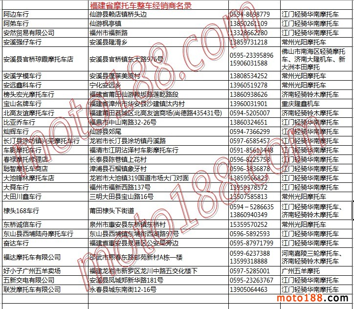 福建省摩托車整車經銷商名錄