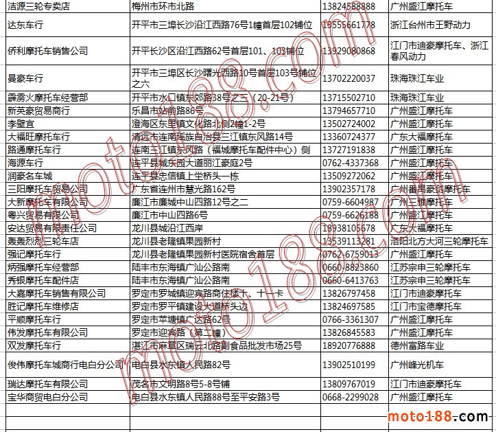 廣東省摩托車整車經銷商名錄