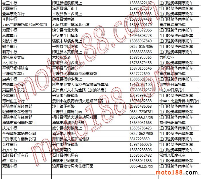 貴州省摩托車整車經銷商名錄