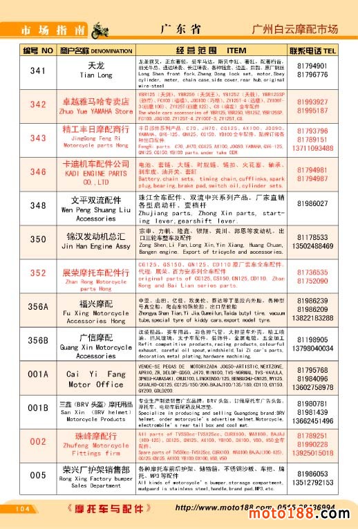 廣州白云摩配市場名錄