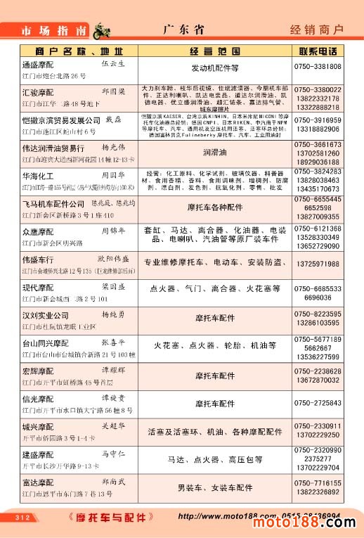 廣東省摩配經銷商戶