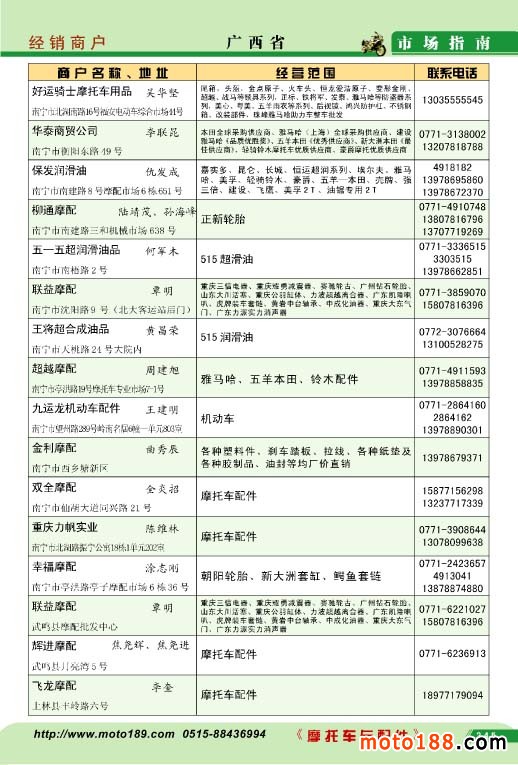 廣西省摩托車配件經(jīng)銷商戶