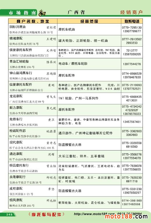 廣西省摩托車配件經銷商戶