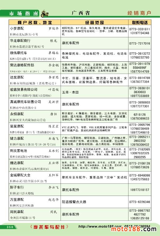廣西省摩托車(chē)配件經(jīng)銷(xiāo)商戶(hù)