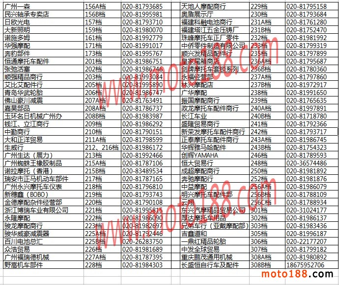 廣州白云摩配市場經銷商名錄