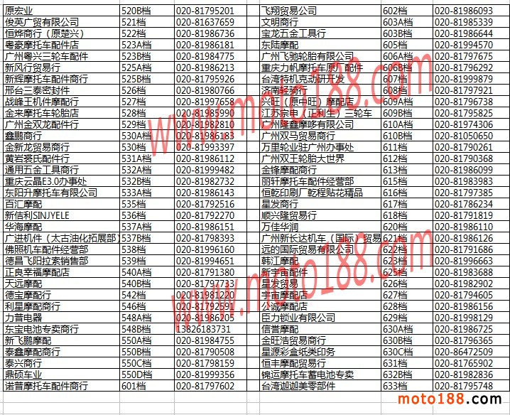 廣州白云摩配市場經銷商名錄