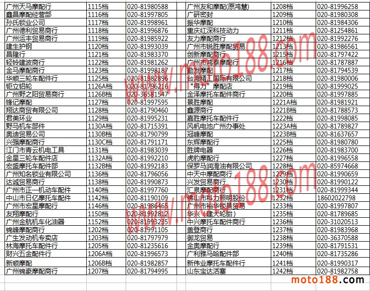 廣州白云摩配市場經(jīng)銷商名錄