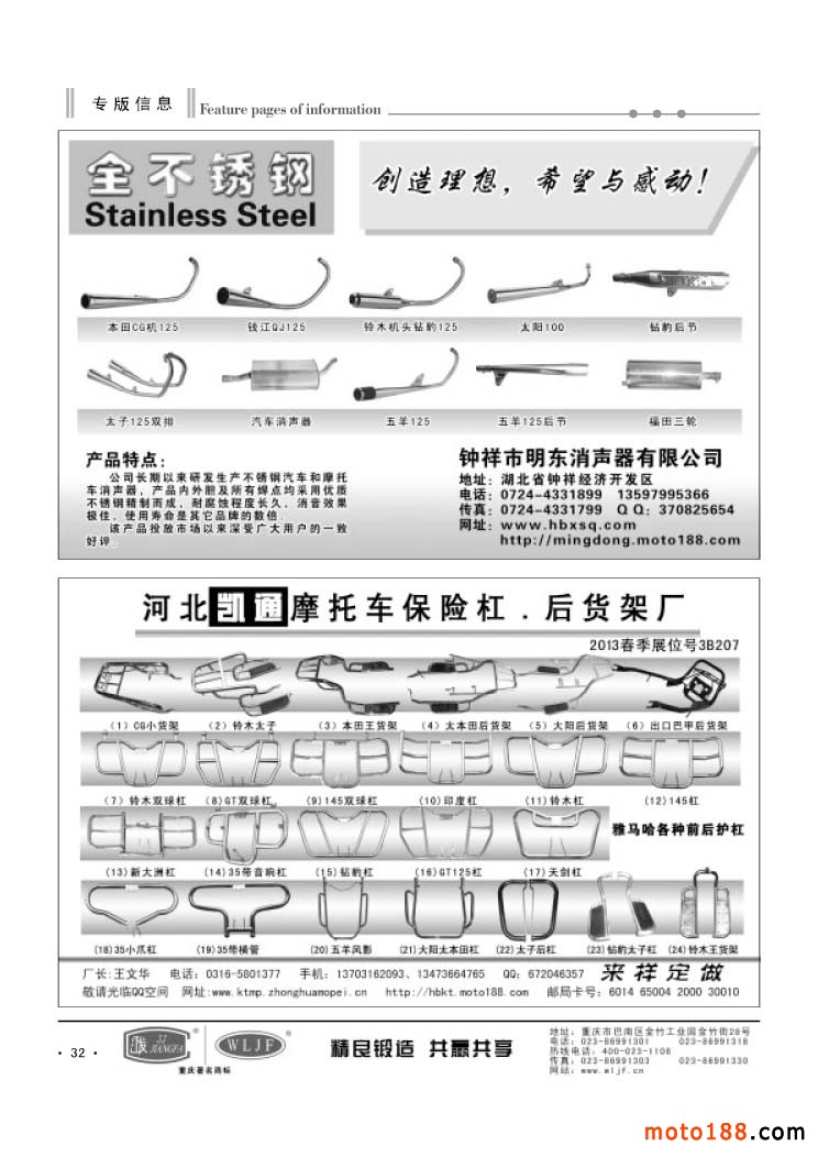 32 鐘祥市明東消聲器有限公司/ 河北凱通摩托車保險杠.后貨架廠
