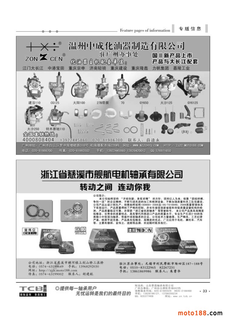 33 溫州中成化油器制造有限公司/慈溪市艦航電機(jī)軸承有限公司
