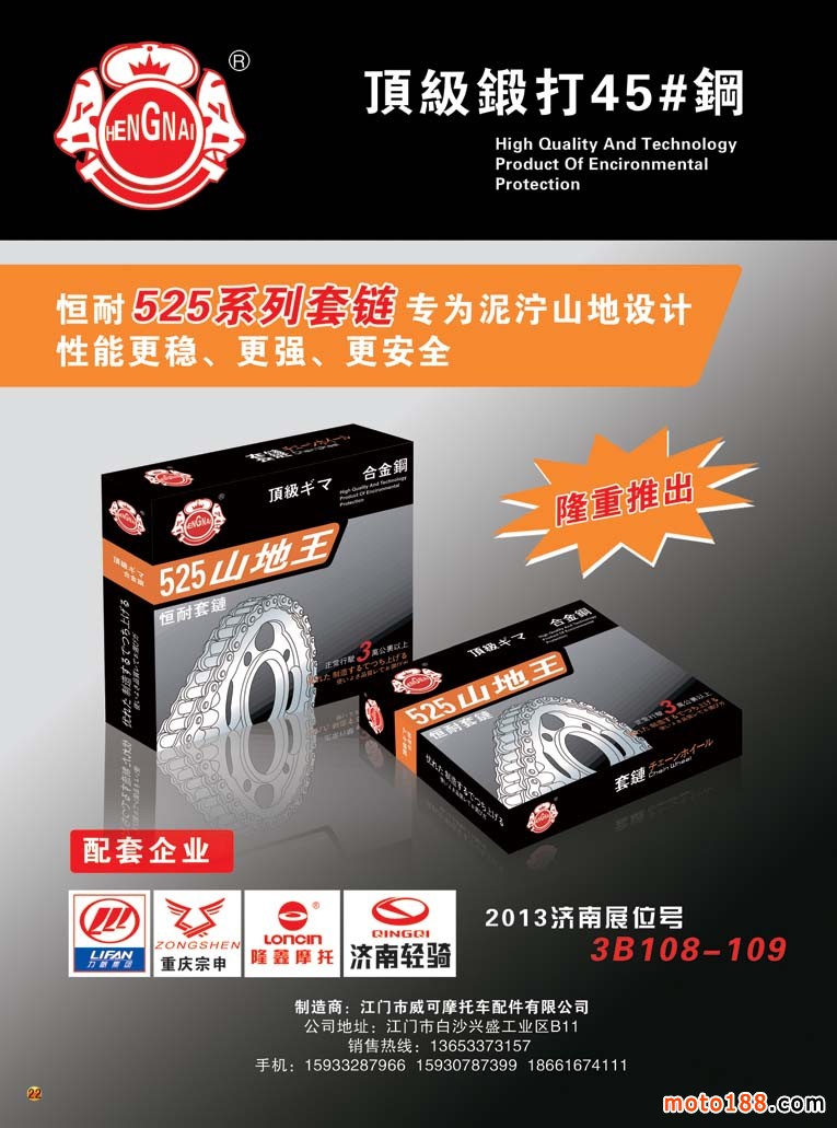 《摩托車與配件》自三月份正式改版后,雜志的    有較大的變化。因為是剛剛推出,市場還有一個適應時期,尤其一些市場人士有顧慮,擔心頻率加快以后廣告的留存期縮短,還有擔心印刷量會下降。為了慎重起見,我們雜志社在春運一結束后就安排部分人員去華東和華南及中南、西南等市場走了一遍。先后去了如皋、無錫、撫順、臺州以及商丘、鄭州、武漢、襄陽、荊州、株洲、長株潭、廣州、重慶、成都等市場,行程在隴海線南邊走了一圈。到市場第一線汲取客戶的意見,了解市場的發行,調整了部分發行點,并新建和恢復了六個發行點,進一步完善市場的發行。雜志改刊后不僅僅是期數的變化,更是一個系統的工作,這涉及到我們服務的提升,整個系統的升級。在這一期雜志內,我們會用一定的篇幅介紹我們所走過的市場的具體狀況。目前我們是行業長期調整以來僅存的專業媒體,一方面我們面臨市場的風險,如果不努力我們也會和前面已經淪陷的媒體一樣,被市場拋棄。另一方面來自我們內部及系統內的風險,即我們的管理和服務是否和雜志升級一樣,也在同步提升?我們面臨新的改革發展機會,我們能否把握住、把握好?在進行科學的發展時,不能因為太 太快而摔跤,所以我們雜志在今年的發展目標是:緊跟市場、穩中求進。在外銷市場面臨銷售不暢的現實情況下,如何服務好內需內銷市場,這也是我們和生產型企業共同要探討的課題。通過對市場的走訪,我們有了目標和方向,也有了信心和動力。正因為此,我們三月份推出雙期后所產生的一系列問題,我們都在妥善應對。今年四月份濟南會議,我們會展現我們去冬今春的勞動成果: