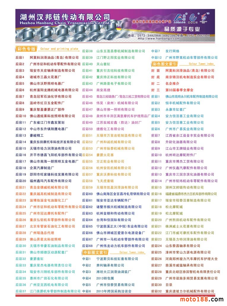 3、《中國摩托車配件生產企業大全(網址總匯)》第十一次升級版,在會上及各大市場同時發送。全國大市場還會送書上門,沒參會的企業可在門上坐等,愿意付郵費(快遞到付也可)的企業我們都會快遞送達。