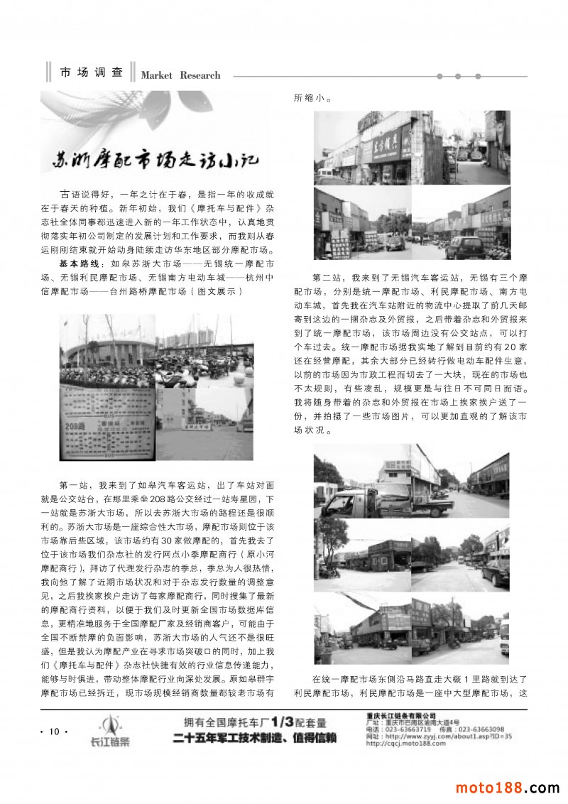 《摩托車與配件》自三月份正式改版后,雜志的    有較大的變化。因為是剛剛推出,市場還有一個適應時期,尤其一些市場人士有顧慮,擔心頻率加快以后廣告的留存期縮短,還有擔心印刷量會下降。為了慎重起見,我們雜志社在春運一結束后就安排部分人員去華東和華南及中南、西南等市場走了一遍。先后去了如皋、無錫、撫順、臺州以及商丘、鄭州、武漢、襄陽、荊州、株洲、長株潭、廣州、重慶、成都等市場,行程在隴海線南邊走了一圈。到市場第一線汲取客戶的意見,了解市場的發行,調整了部分發行點,并新建和恢復了六個發行點,進一步完善市場的發行。雜志改刊后不僅僅是期數的變化,更是一個系統的工作,這涉及到我們服務的提升,整個系統的升級。在這一期雜志內,我們會用一定的篇幅介紹我們所走過的市場的具體狀況。目前我們是行業長期調整以來僅存的專業媒體,一方面我們面臨市場的風險,如果不努力我們也會和前面已經淪陷的媒體一樣,被市場拋棄。另一方面來自我們內部及系統內的風險,即我們的管理和服務是否和雜志升級一樣,也在同步提升?我們面臨新的改革發展機會,我們能否把握住、把握好?在進行科學的發展時,不能因為太 太快而摔跤,所以我們雜志在今年的發展目標是:緊跟市場、穩中求進。在外銷市場面臨銷售不暢的現實情況下,如何服務好內需內銷市場,這也是我們和生產型企業共同要探討的課題。通過對市場的走訪,我們有了目標和方向,也有了信心和動力。正因為此,我們三月份推出雙期后所產生的一系列問題,我們都在妥善應對。今年四月份濟南會議,我們會展現我們去冬今春的勞動成果: