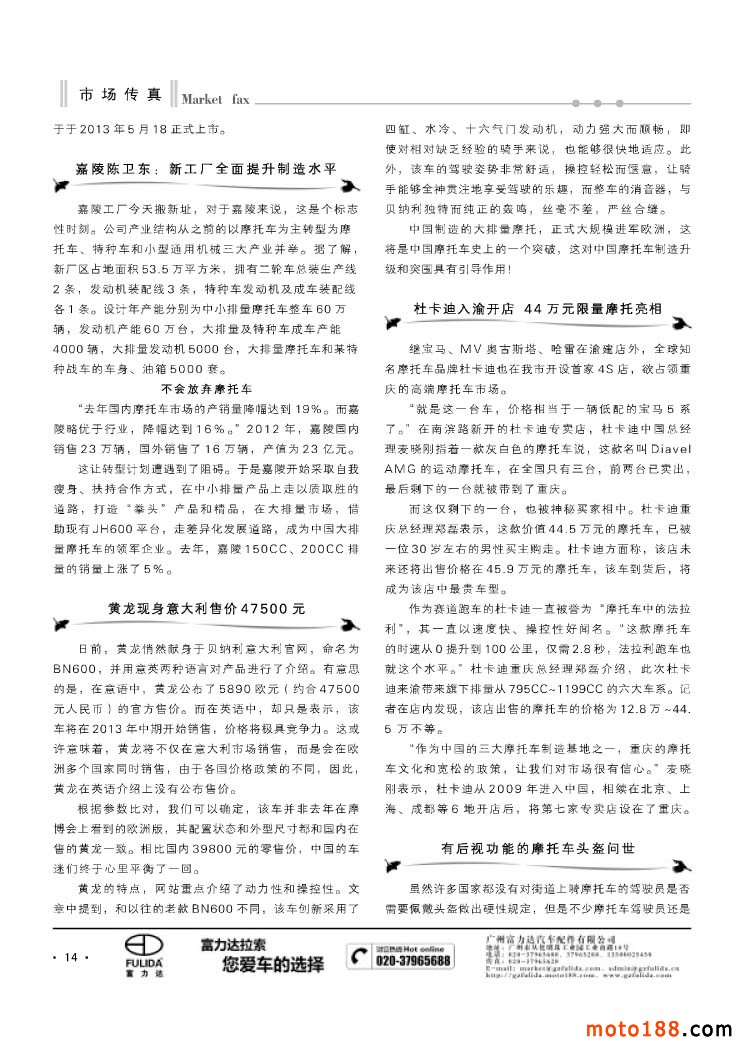 有較大的變化。因為是剛剛推出,市場還有一個適應(yīng)時期,尤其一些市場人士有顧慮,擔(dān)心頻率加快以后廣告的留存期縮短,還有擔(dān)心印刷量會下降。為了慎重起見,我們雜志社在春運(yùn)一結(jié)束后就安排部分人員去華東和華南及中南、西南等市場走了一遍。先后去了如皋、無錫、撫順、臺州以及商丘、鄭州、武漢、襄陽、荊州、株洲、長株潭、廣州、重慶、成都等市場,行程在隴海線南邊走了一圈。到市場第一線汲取客戶的意見,了解市場的發(fā)行,調(diào)整了部分發(fā)行點(diǎn),并新建和恢復(fù)了六個發(fā)行點(diǎn),進(jìn)一步完善市場的發(fā)行。雜志改刊后不僅僅是期數(shù)的變化,更是一個系統(tǒng)的工作,這涉及到我們服務(wù)的提升,整個系統(tǒng)的升級。在這一期雜志內(nèi),我們會用一定的篇幅介紹我們所走過的市場的具體狀況。目前我們是行業(yè)長期調(diào)整以來僅存的專業(yè)媒體,一方面我們面臨市場的風(fēng)險,如果不努力我們也會和前面已經(jīng)淪陷的媒體一樣,被市場拋棄。另一方面來自我們內(nèi)部及系統(tǒng)內(nèi)的風(fēng)險,即我們的管理和服務(wù)是否和雜志升級一樣,也在同步提升?我們面臨新的改革發(fā)展機(jī)會,我們能否把握住、把握好?在進(jìn)行科學(xué)的發(fā)展時,不能因為太 太快而摔跤,所以我們雜志在今年的發(fā)展目標(biāo)是:緊跟市場、穩(wěn)中求進(jìn)。在外銷市場面臨銷售不暢的現(xiàn)實情況下,如何服務(wù)好內(nèi)需內(nèi)銷市場,這也是我們和生產(chǎn)型企業(yè)共同要探討的課題。通過對市場的走訪,我們有了目標(biāo)和方向,也有了信心和動力。正因為此,我們?nèi)路萃瞥鲭p期后所產(chǎn)生的一系列問題,我們都在妥善應(yīng)對。今年四月份濟(jì)南會議,我們會展現(xiàn)我們?nèi)ザ翊旱膭趧映晒?/div>