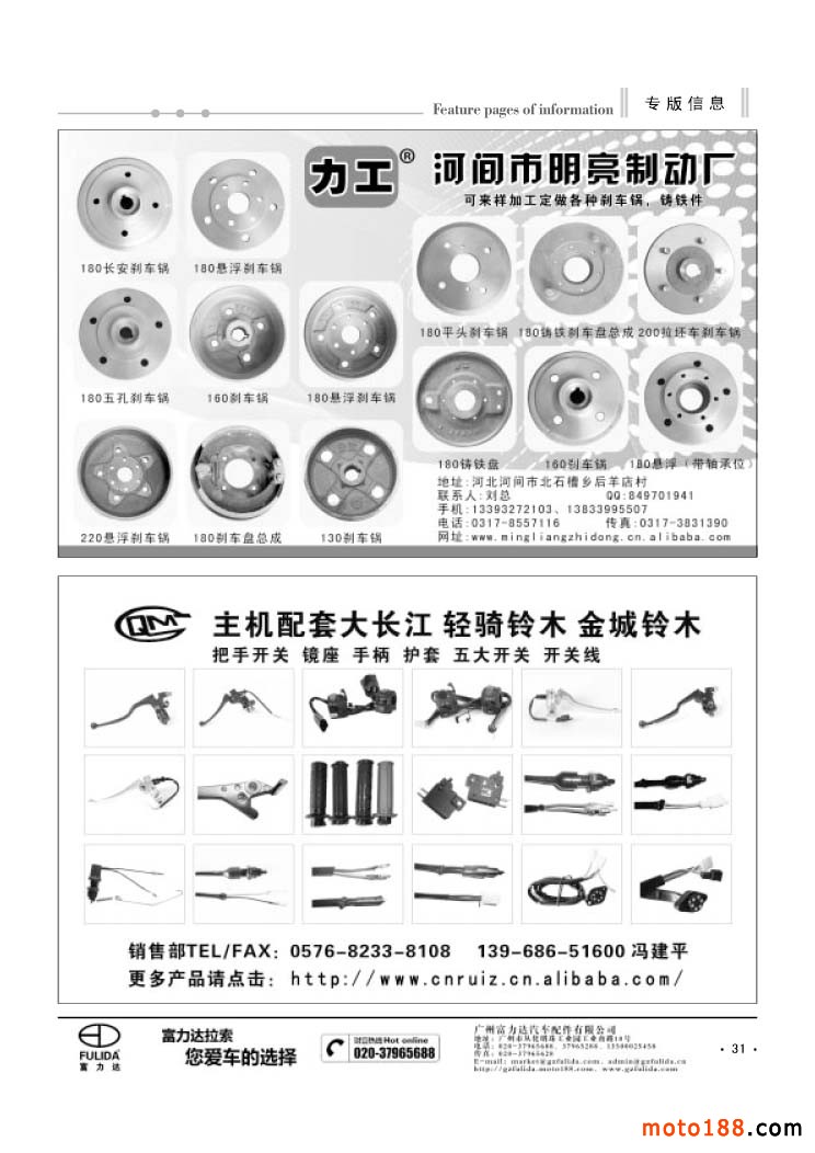3、《中國摩托車配件生產企業大全(網址總匯)》第十一次升級版,在會上及各大市場同時發送。全國大市場還會送書上門,沒參會的企業可在門上坐等,愿意付郵費(快遞到付也可)的企業我們都會快遞送達。
