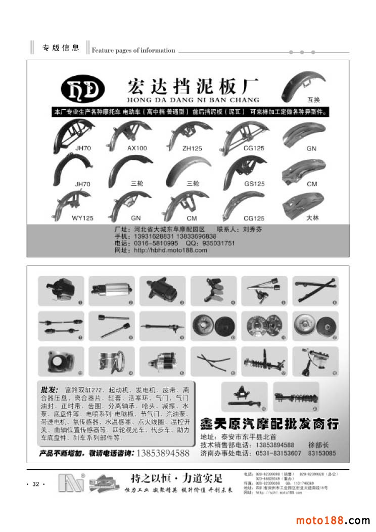 3、《中國摩托車配件生產(chǎn)企業(yè)大全(網(wǎng)址總匯)》第十一次升級版,在會上及各大市場同時發(fā)送。全國大市場還會送書上門,沒參會的企業(yè)可在門上坐等,愿意付郵費(快遞到付也可)的企業(yè)我們都會快遞送達(dá)。