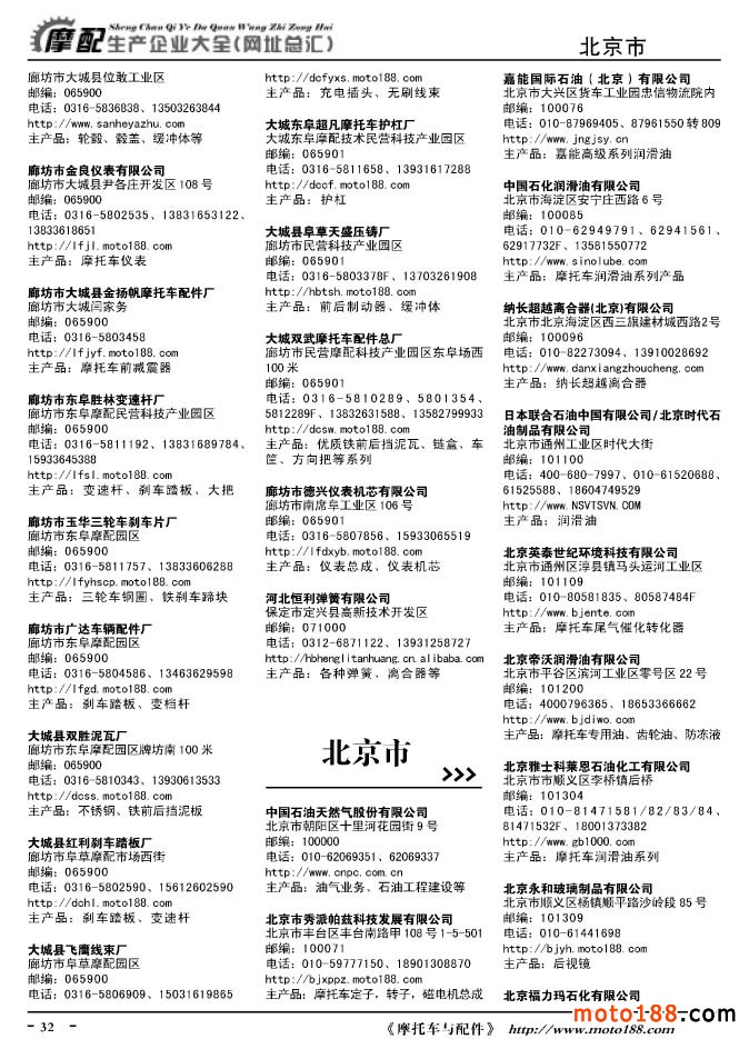 《摩托車與配件生產企業大全》打造行業信息的航母