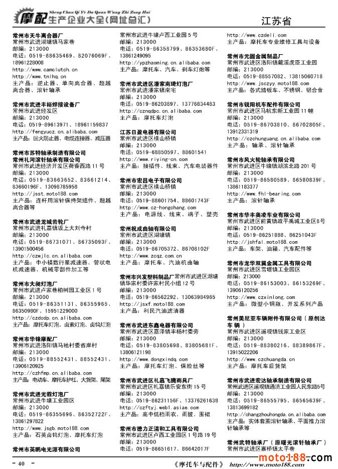 《摩托車與配件生產企業大全》打造行業信息的航母