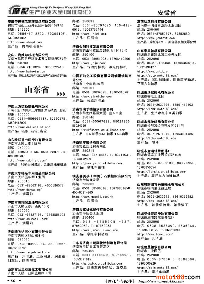 《摩托車與配件生產企業大全》打造行業信息的航母