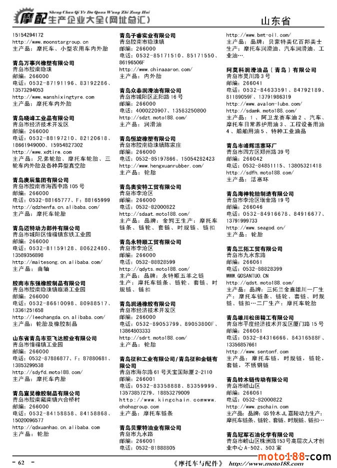 《摩托車與配件生產企業大全》打造行業信息的航母